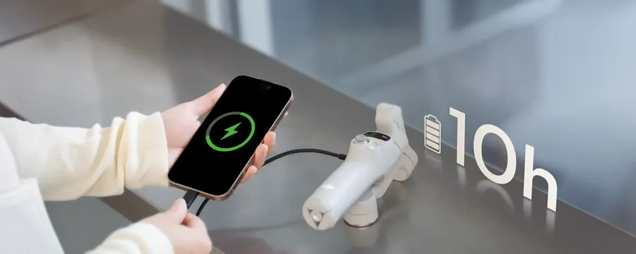 Камера Osmo Mobile 7 Series обеспечивает 10 часов работы и оснащена портом USB-C для зарядки телефона, что идеально подходит для длительной съемки на открытом воздухе и прямых трансляций.