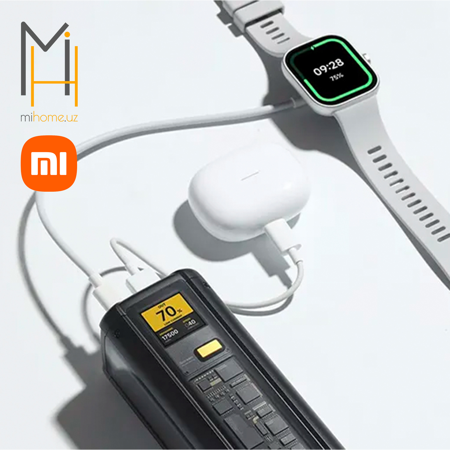 Мощный внешний аккумулятор с уникальным прозрачным дизайном и поддержкой быстрой зарядки. Оснащён тремя портами, включая два USB Type-C (140 Вт и 45 Вт) и USB Type-A (120 Вт), он позволяет заряжать до трёх устройств одновременно. С ёмкостью 25 000 мАч (номинальная — 14 000 мАч) и удобным дисплеем для отображения уровня заряда, пауэрбанк обеспечивает быструю зарядку ноутбуков и смартфонов. Xiaomi заявляет, что он способен зарядить Xiaomi 14 Pro до 100% всего за 20 минут, делая его незаменимым спутником для современных пользователей.